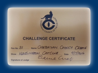 (Click HERE for Kensington and HERE for Eastern show judges reports (look for "Chegayan Choccy Cream")